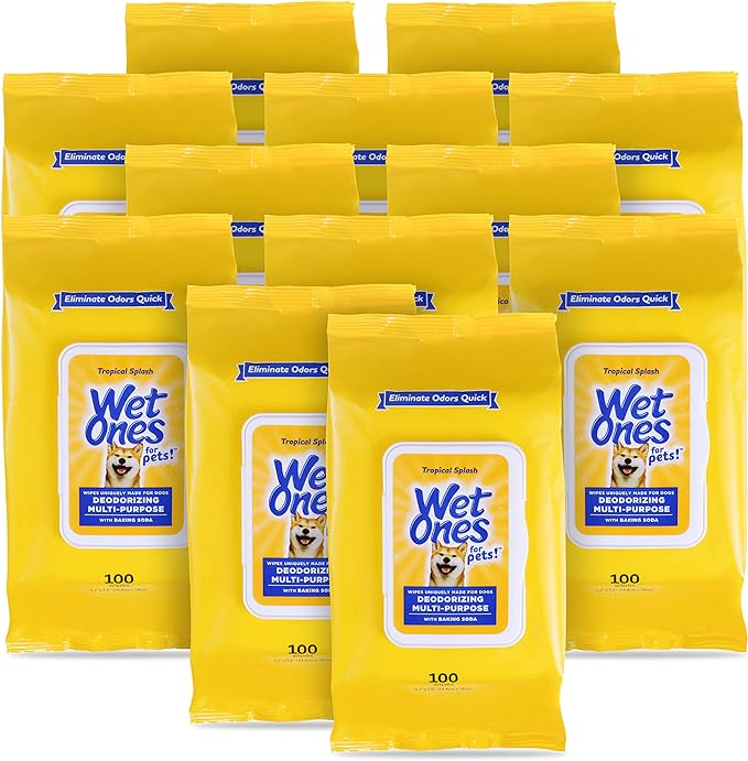 Wet Ones for Pets Deodorizing Multi-Purpose Dog Wipes With Baking Soda, 100 ct - 12 Pack | Dog Deodorizing Wipes For All Dogs in Tropical Splash Scent, Wet Ones Wipes for Deodorizing Dogs