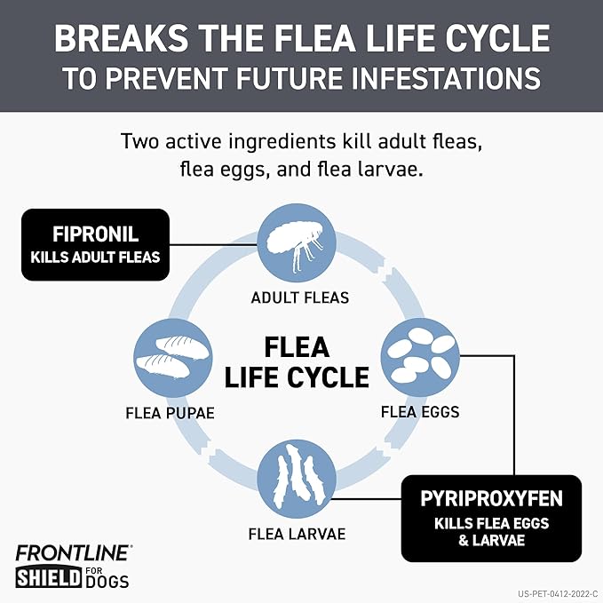 • FRONTLINE Shield provides proven flea and tick protection with repellency action against ticks and mosquitoes