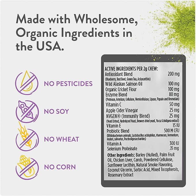 Green Gruff Detox Immunity Dog Probiotics for Digestive Health - Dog Allergy Relief & Immune Support for Dogs - Organic Dog Immune Supplement with Protein, Multivitamin & Omega 3 Fish Oil - 24 Chews
