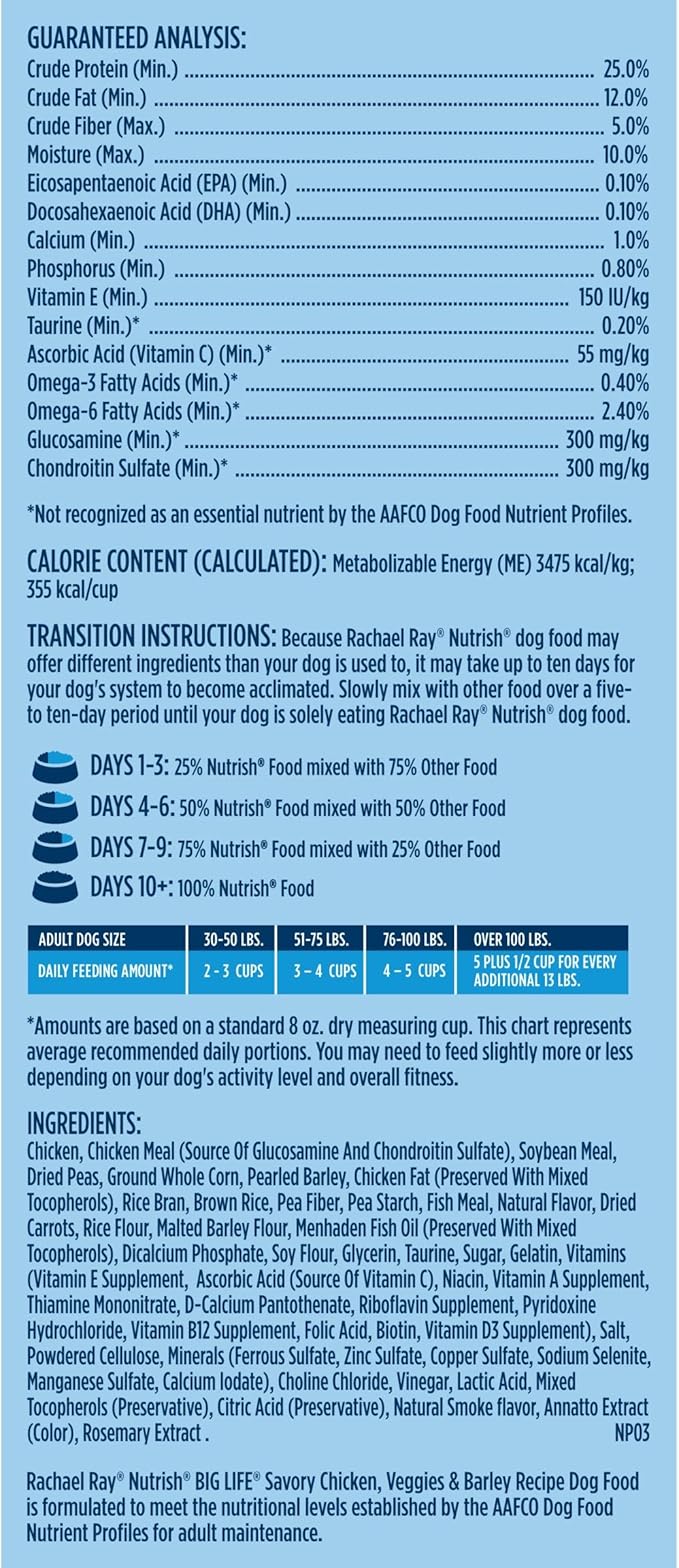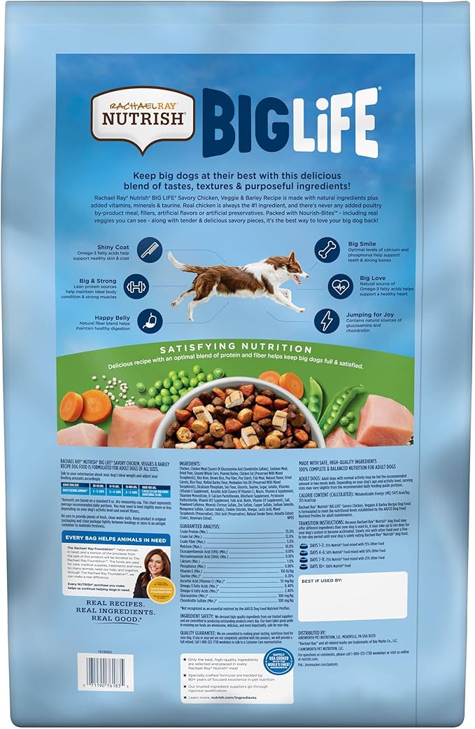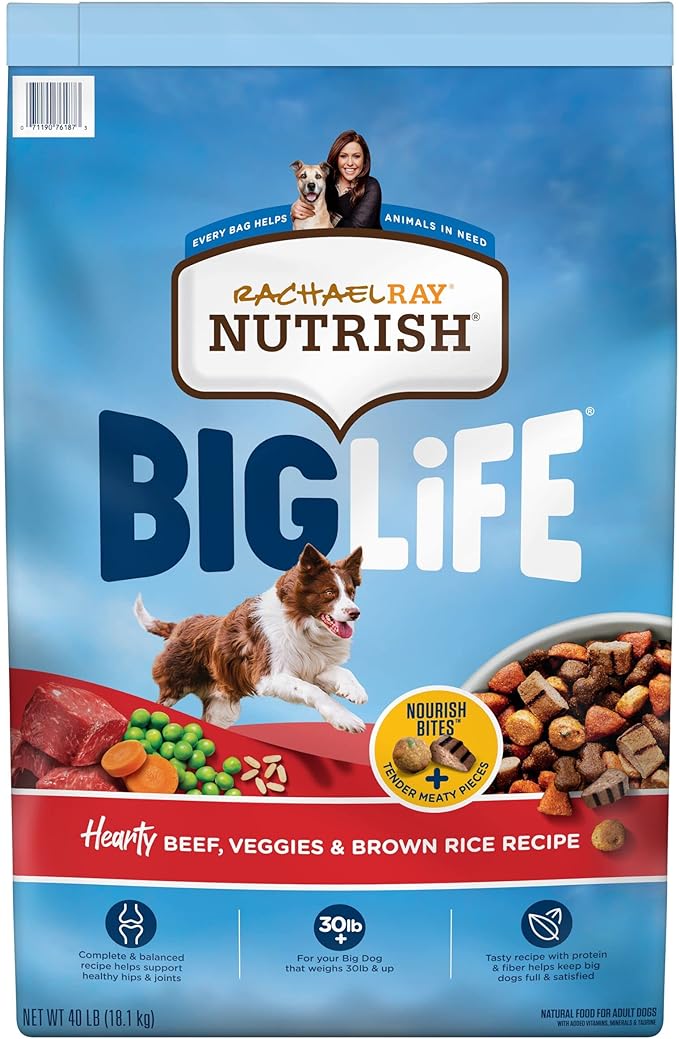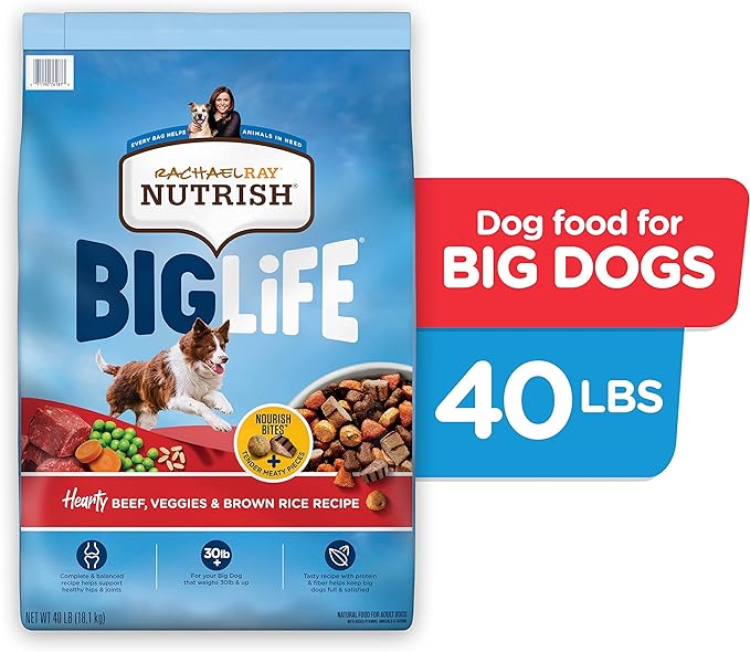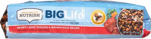 Rachael Ray Nutrish Big Life Dry Dog Food, Medium & Large Breed, Hearty Beef, Brown Rice, & Veggies, 40 Pounds