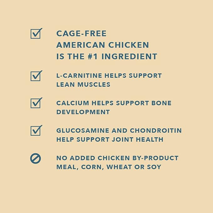 • Real Meat First: Cage-free American chicken is the #1 ingredient