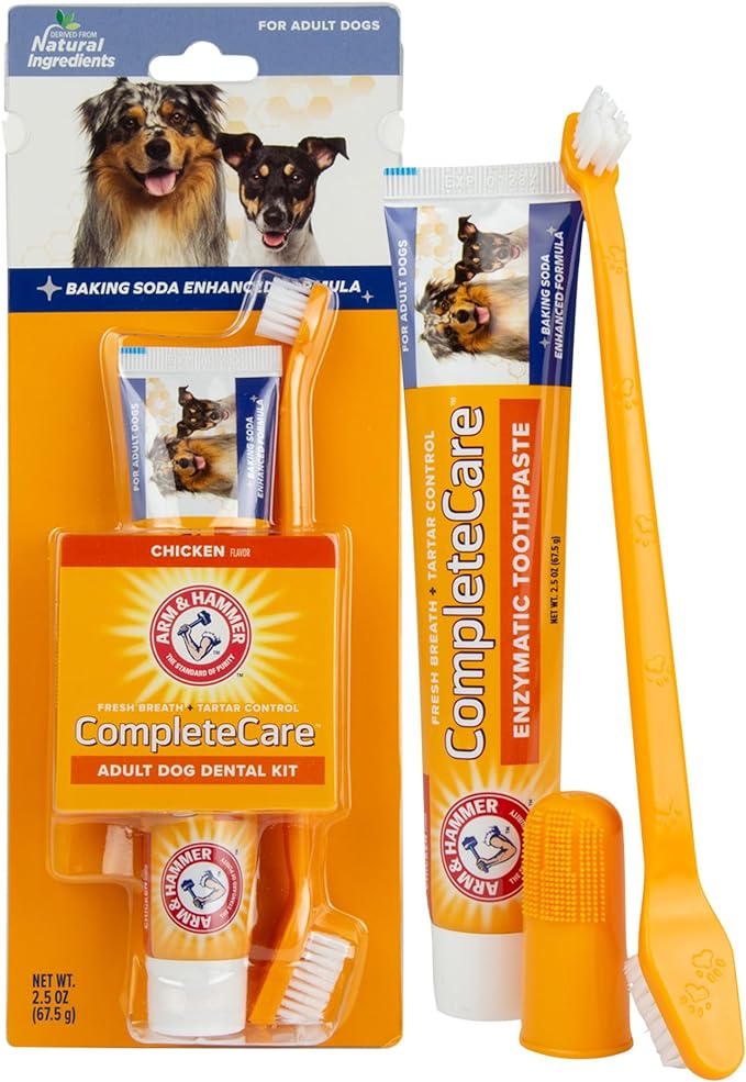 Arm & Hammer Complete Care Dog Dental Kit | 2.5 oz Chicken Flavor Enzymatic Dog Toothpaste, Toothbrush, & Finger Brush | Baking Soda Enhanced Formula for Fresh Breath and Tartar Control