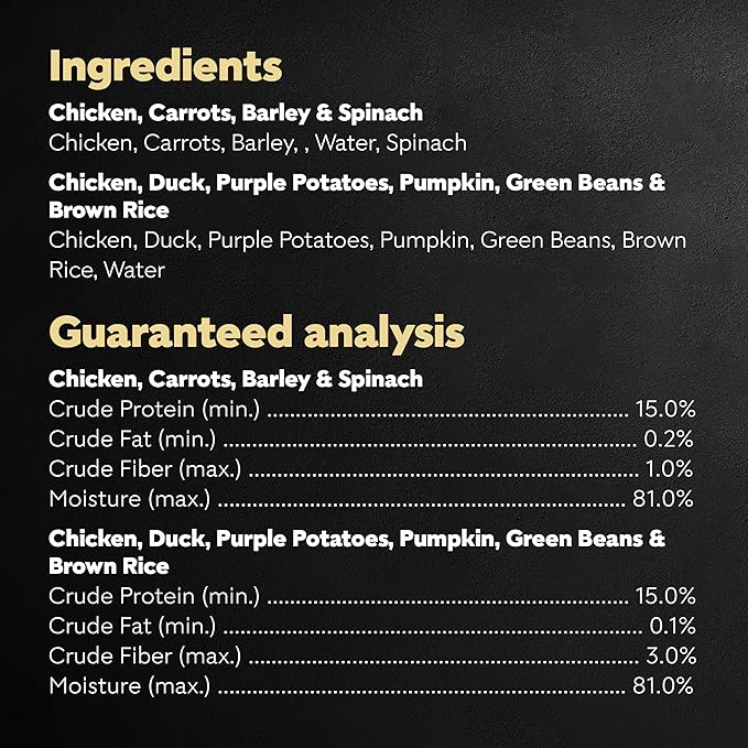 • No artificial colors, flavors, fillers, or preservatives, just simple ingredients your dog will love like real chicken and hearty vegetables