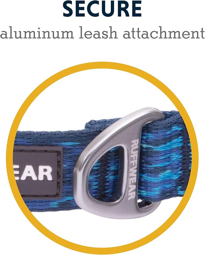 Ruffwear, Flat Out Dog Collar (Formerly Hoopie), Webbing Collar for Walking and Everyday Use, Oceanic Distortion, 11"-14"