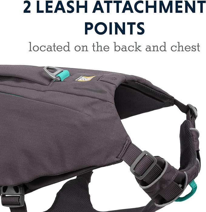 • 2 leash points: Attach a leash to the aluminum V-ring on the back for more relaxed adventures or to the reinforced webbing loop on the chest to help redirect dogs that pull