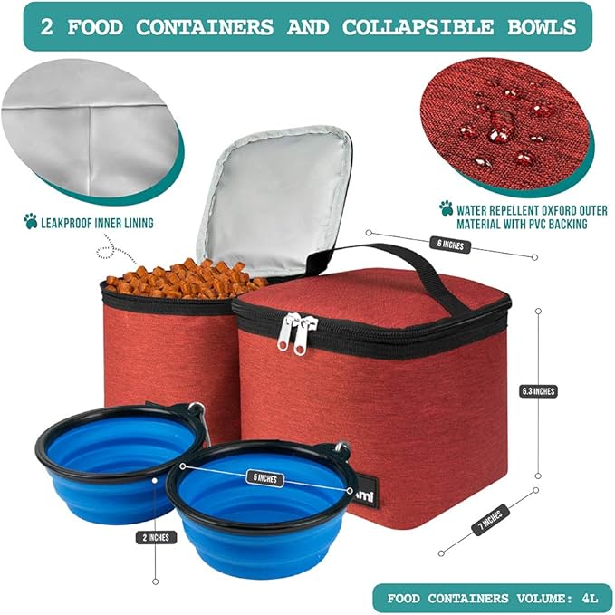 • PET SUPPLIES DOG DIAPER BAG: The dog travel backpack helps dog owners easily organize treats, kibbles, toys, leashes, and all other pet accessories and training supplies. The doggie traveling backpack comes with two food containers and two collapsible silicone dog bowls, ensuring that your pet is well-fed and hydrated during your hiking camping trip. Each food container has a 4L capacity, making it a camping gear must have for all small, medium, and large size dogs and cats.