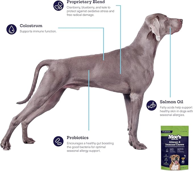 • MOE’S, YOUR PUP’S PERSONAL CARE & SUPPORT SYSTEM - Moe’s knows the importance of providing your pal with the best dog supplements that this planet has to offer, and we do just that. While other dog allergy relief brands are all bark and no bite, we make sure to bring the best bite – well, more specifically, “bites.”