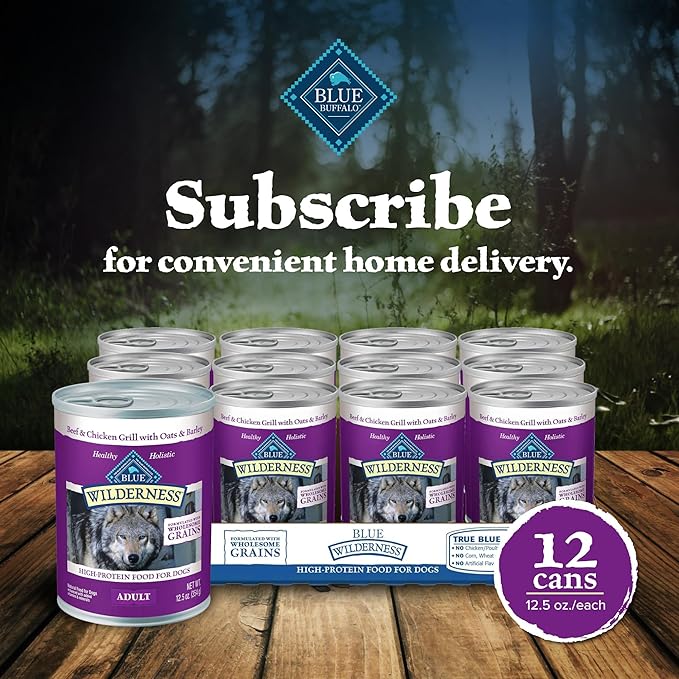 • Contains: Twelve (12) 12.5-oz. cans of BLUE Wilderness High-Protein Adult Wet Dog Food, Beef & Chicken Grill with Wholesome Grains