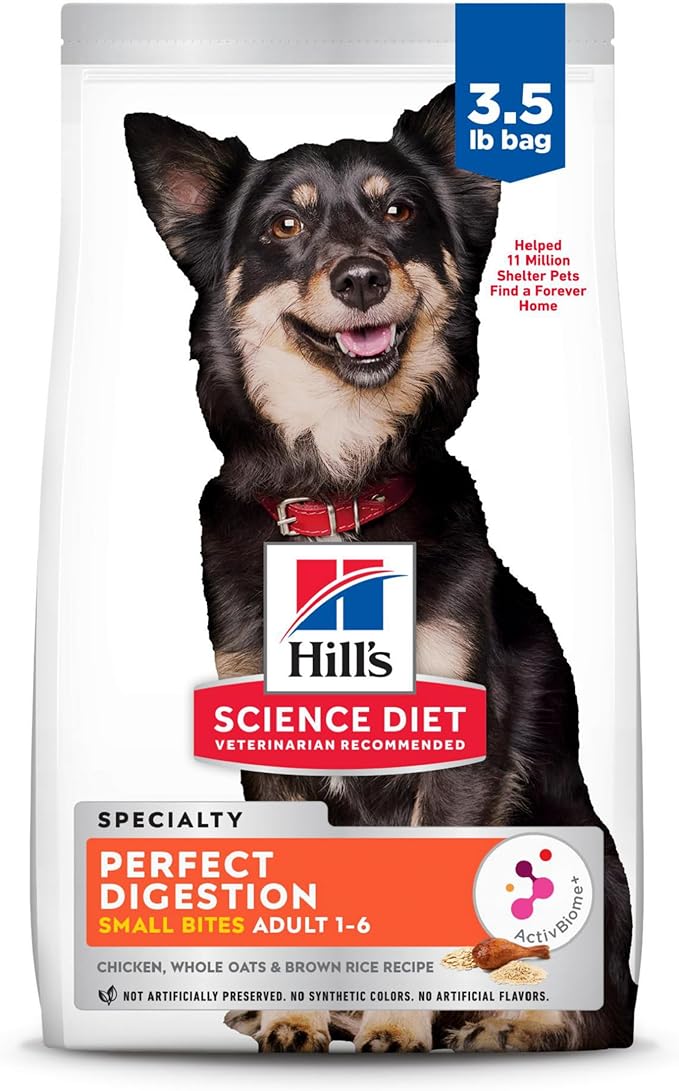 Hill's Science Diet Perfect Digestion, Adult 1-6, Digestive Support, Small Kibble, Dry Dog Food, Chicken, Brown Rice, & Whole Oats, 3.5 lb Bag