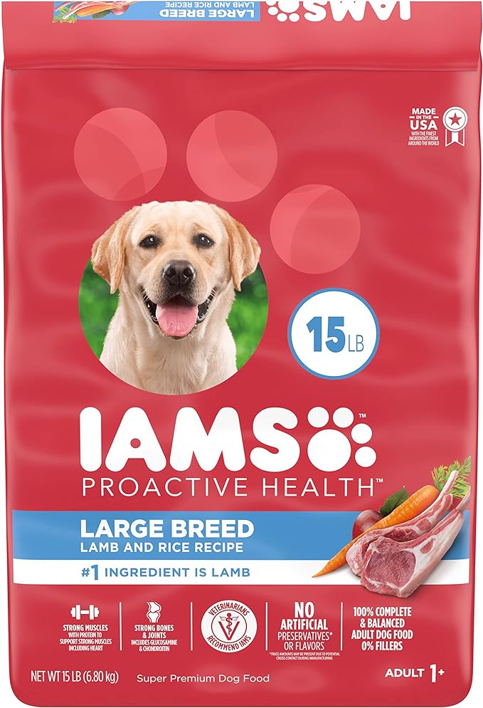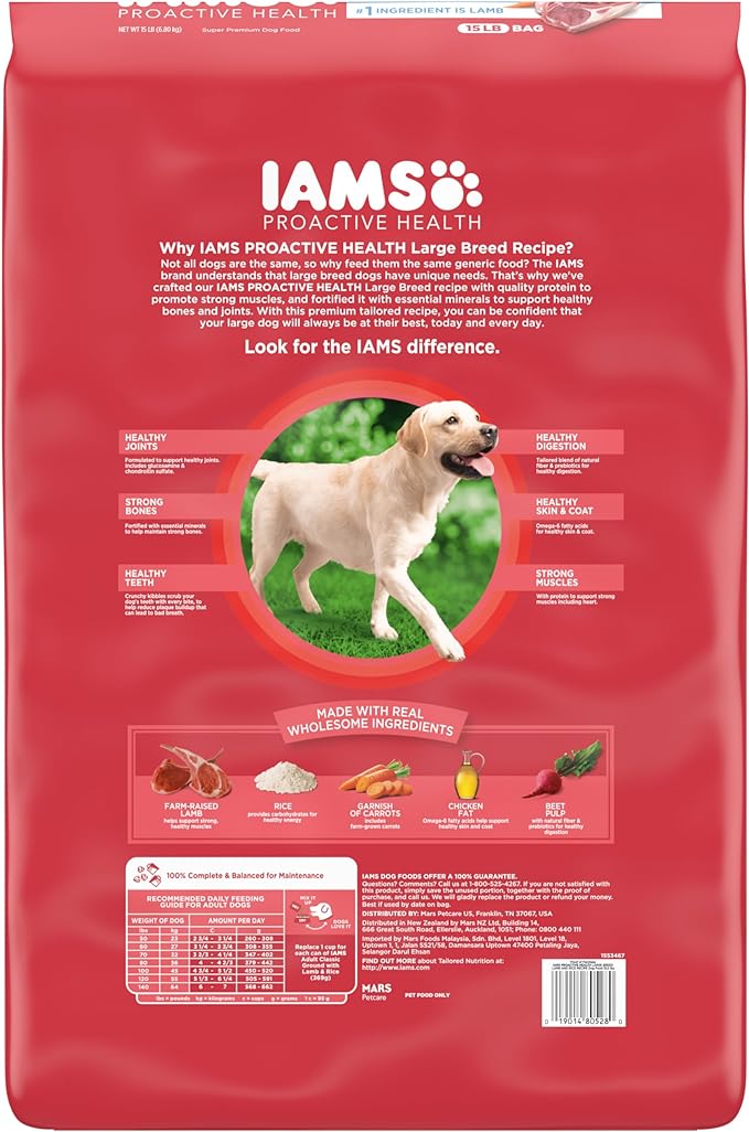 • 15lb. Bag: Contains one (1) 15 lb. bag of IAMS PROACTIVE HEALTH Large Breed Adult Dry Dog Food Lamb and Rice Recipe