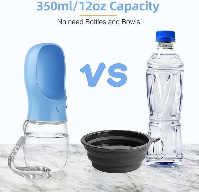 • ✅【12OZ CAPACITY】Reasonable 12oz capacity dog water bottle, enough for taking your small and medium breed dog for outdoor walking, hiking, traveling or any outdoor activities.