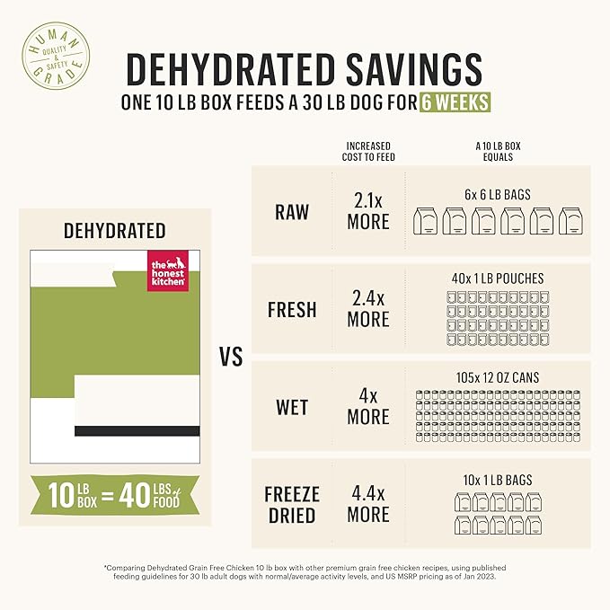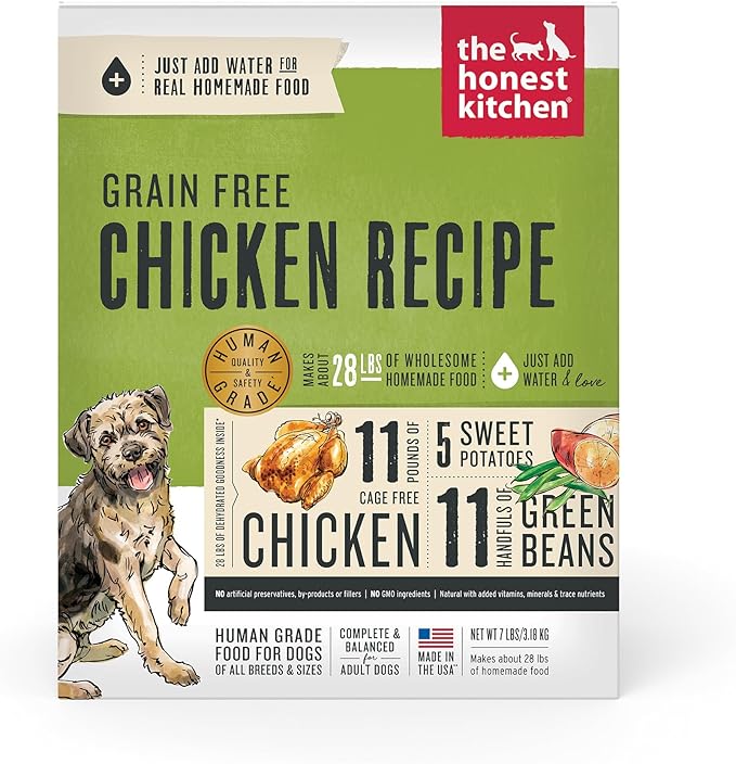 • GRAIN FREE, FREE RANGE CHICKEN: The Honest Kitchen Grain Free Chicken dog food is made with real whole food ingredients like free range chicken, green beans & apples, which are gently dehydrated for maximum nutrient retention and easy digestion.