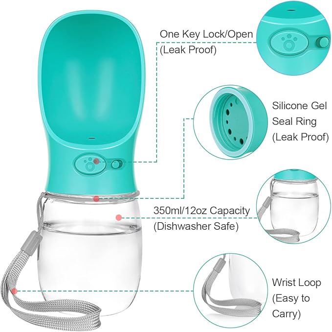 • Portable Dog Water Bottle: Dog water bottle no spill is necessary travel companion, while you out with your furry friend. Small-Sized travel dog water bottle makes it easy to carry on your walks or trip! Perfect for out with your furry friend on hikes and long walk! Just press the button and tilt back, the dog portable water bottle will allow for drainage back into the bottle if your dog declines to drink it. No water waste! Pet water bottles are great for keeping pets hydrated on the go.