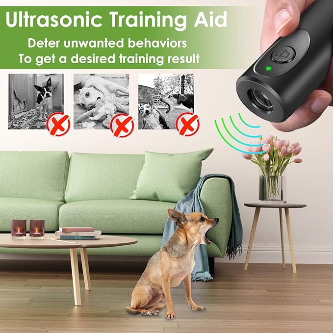 • Training Efficiently and Correct Unwanted Behaviors - Dog barking deterrent device can help dogs develop good habits, such as using ultrasound to stop dog barking, chasing, fighting, eating unsafe food and other bad behaviors.This anti barking device will become a good behavior training tool for dogs. It can also be used to warn unfriendly dogs a little while walking.