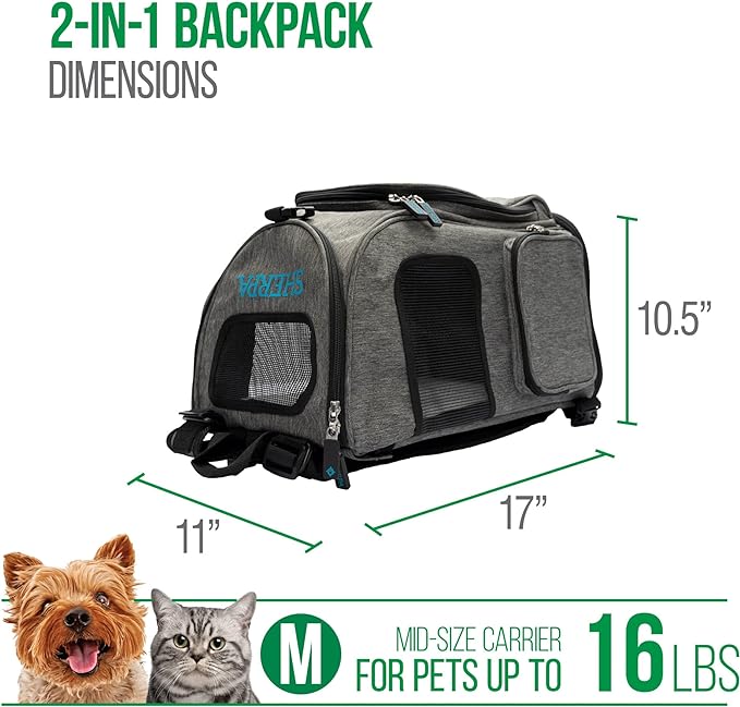 Sherpa 2-in-1 Backpack Travel Pet Carrier, Airline Approved & Guaranteed On Board - Gray, Medium