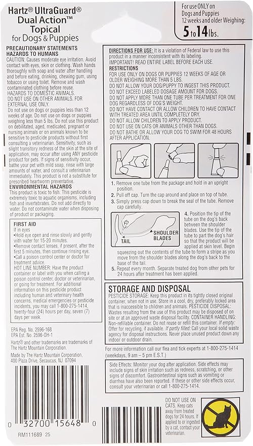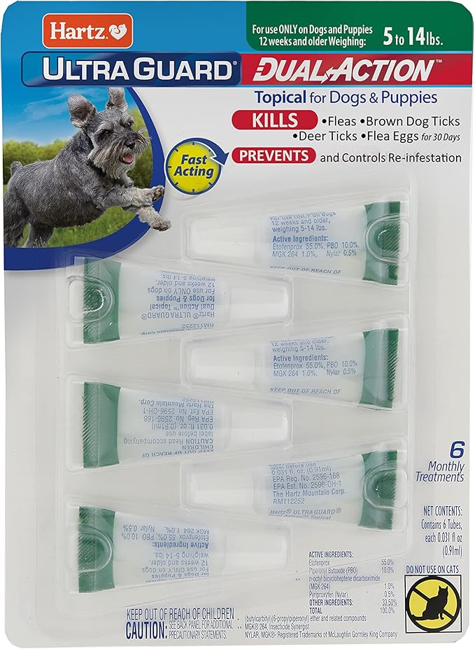 Hartz UltraGuard Dual Action Flea & Tick Topical Dog Treatment and Flea and Tick Prevention, 6 Months, 5-14 Pound Dogs 6-count(Pack of 1)