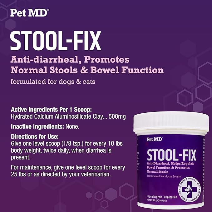 Pet MD Stool-Fix - Powdered Clay Anti Diarrhea for Dogs & Cats - Anti Diarrheal Treatment for Upset Stomach Relief, Promotes Normal Stool - 100g