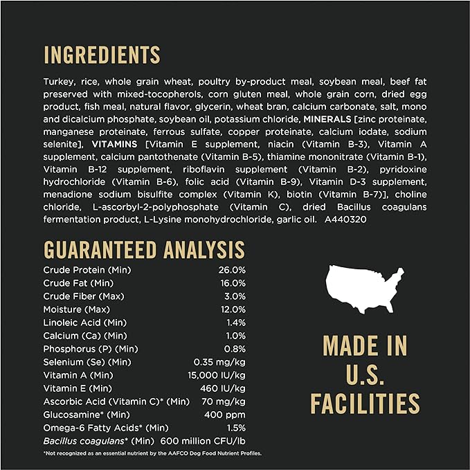 • Real turkey is the number 1 ingredient and this high protein dog food helps dogs maintain an ideal body condition