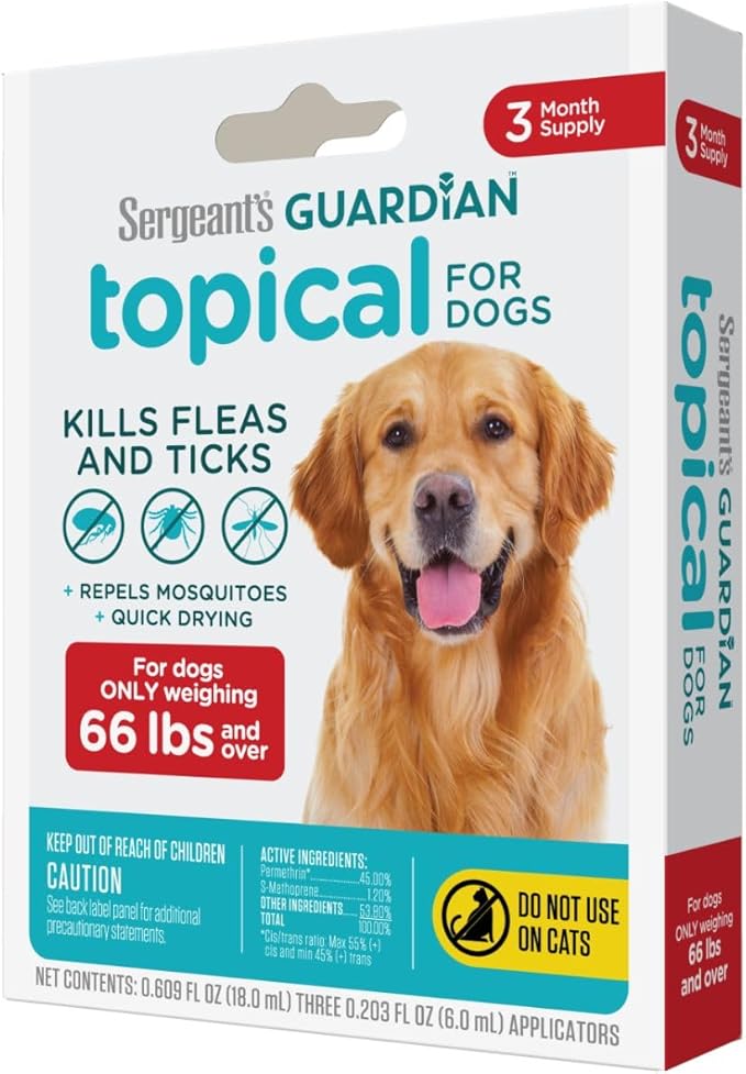 Sergeant's Guardian Flea & Tick Squeeze On Topical for Dogs, 66+ lbs., 3 Count