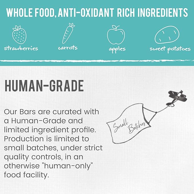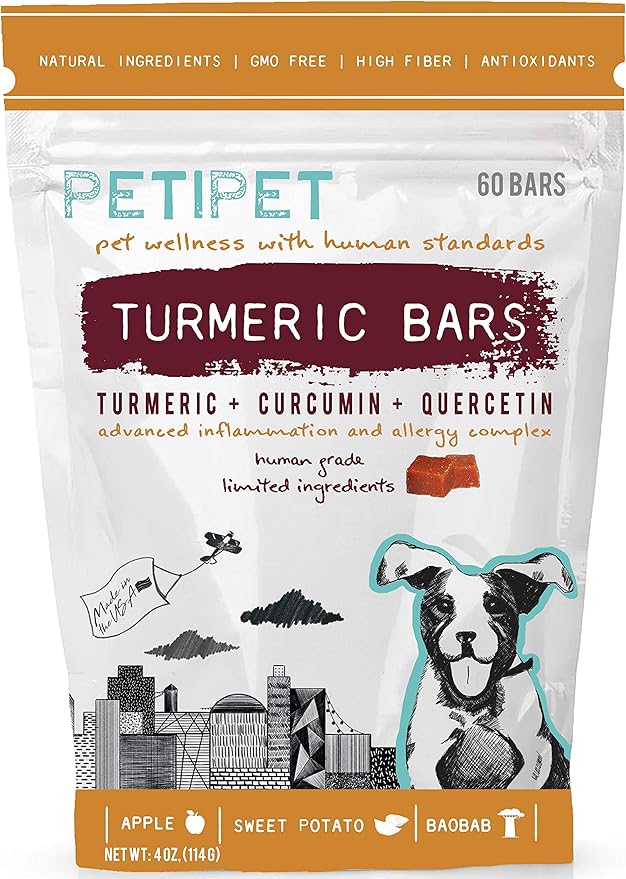 • DELICIOUS FLAVORS: PETIPET Turmeric Bars are a delicious mix of sweet potatoes, apples and ginger; made under strict quality controls, in an otherwise “human only” certified food facility. This ensures a filler-free, nutrient-packed product worthy of your pet.