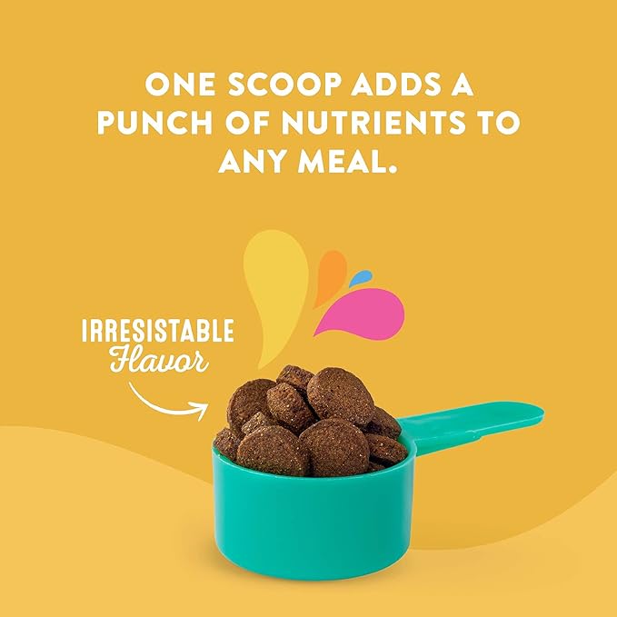 • SMART AND SAVORY DOG FOOD TOPPER: Add it atop all their favorite foods with the included serving scoop for a touch of extra tastiness that's free of artificial flavors, colors, wheat, and soy so your pet gets everything they need, and nothing they don't.