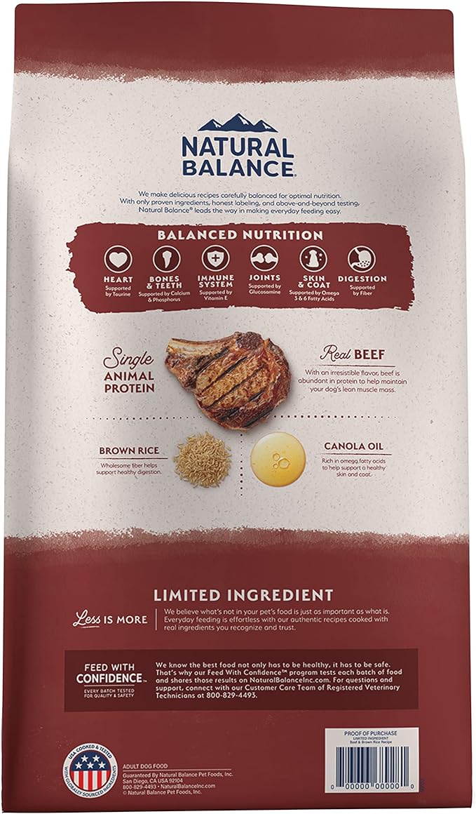 Natural Balance Limited Ingredient Adult Dry Dog Food with Healthy Grains, Beef & Brown Rice Recipe, 24 Pound (Pack of 1)