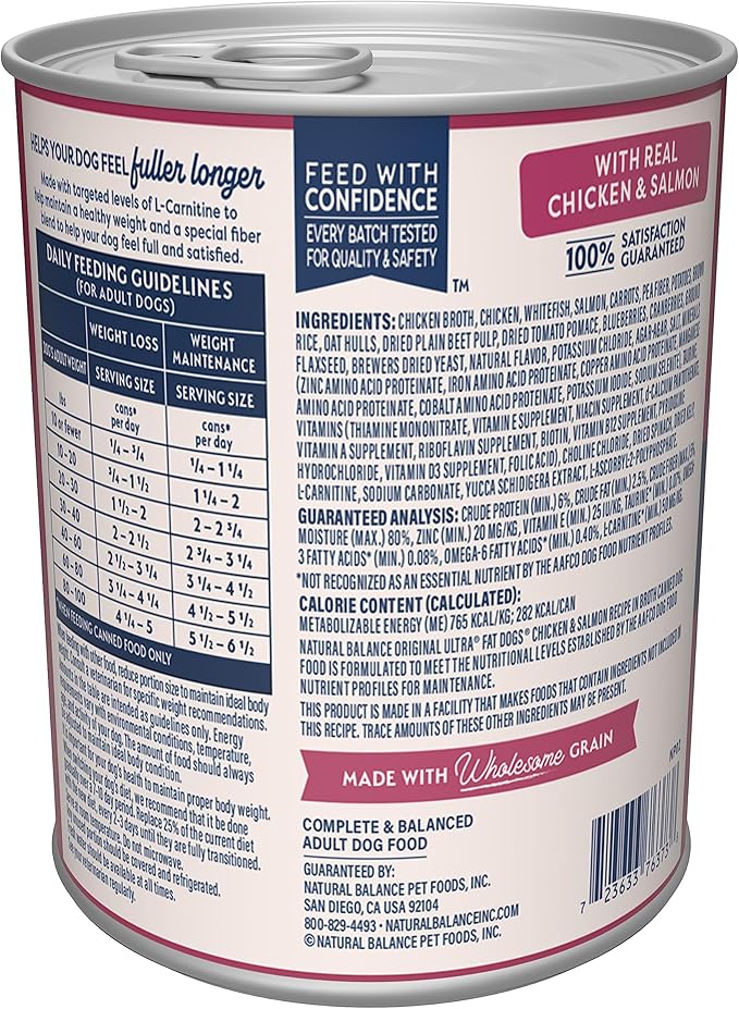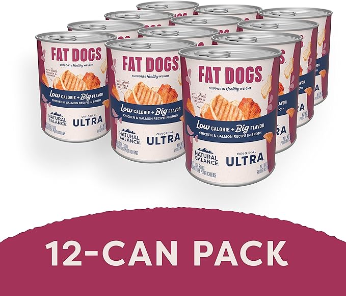 Natural Balance Original Ultra Fat Dogs Adult Low Calorie Wet Dog Food for Overweight Dogs, Chicken & Salmon Recipe in Broth, 13-oz. Can (Pack of 12)