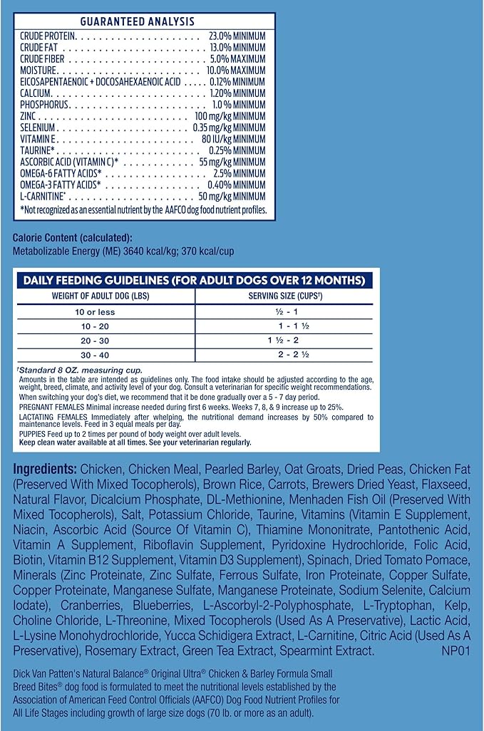 Natural Balance Original Ultra Chicken & Barley Small-Breed Bites Dry Dog Food 11 Pound (Pack of 1)