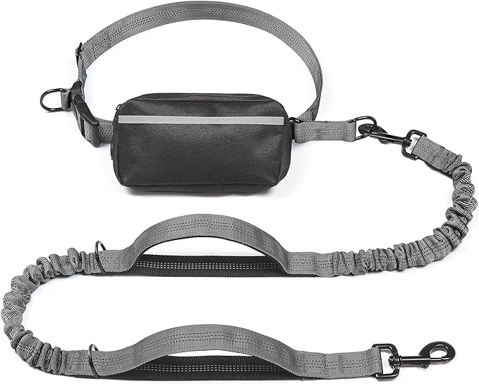 iYoShop Hands Free Dog Leash with Zipper Pouch, Dual Padded Handles and Durable Bungee for Walking, Jogging and Running Your Dog (Large, 25-120 lbs, Grey)
