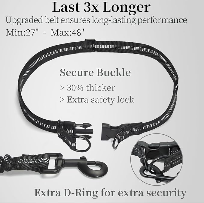 • Hand free waist wearing: Enjoy a waist dog running leash belt that lets you freely use your phone or read a newspaper without feeling restrained by your Dog's movements