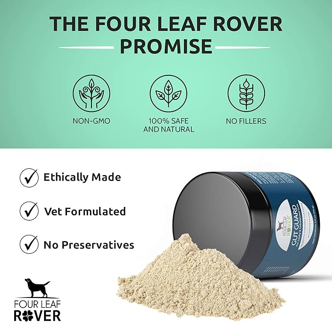 • Help your dog recover from leaky gut: Gut Guard is our custom blend of powerful probiotics, prebiotics and organic herbs to soothe your dog's distressed gut and help seal a leaky intestinal lining. It is a special formulation by holistic veterinarian Dr Patricia Jordan.