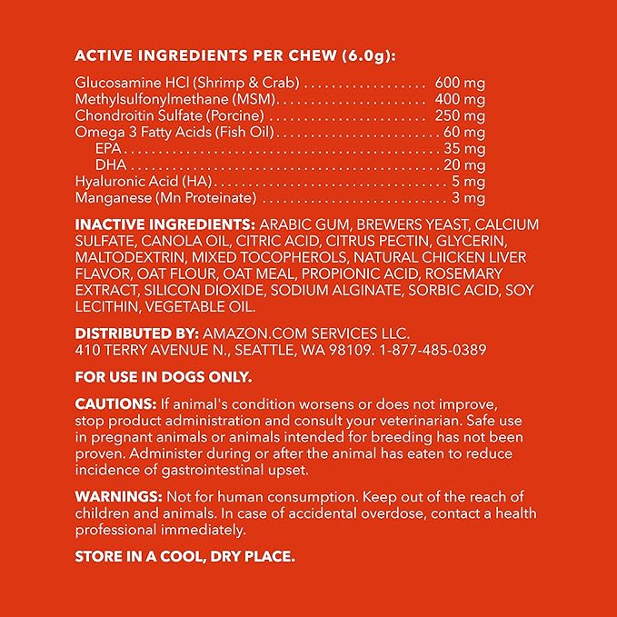 Amazon Brand - Wag Hip & Joint Soft Chews for Dogs, 120 Count