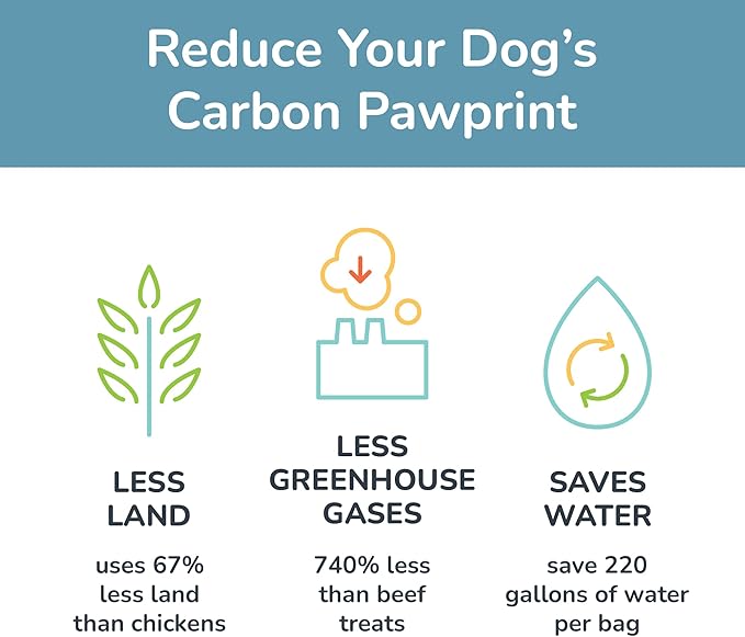 • REDUCING THE CARBON PAWPRINT - We make sustainability a priority! Insect protein uses less water & almost no greenhouse gases. Our treats save 200 gallons of water PER BAG compared to traditional products.