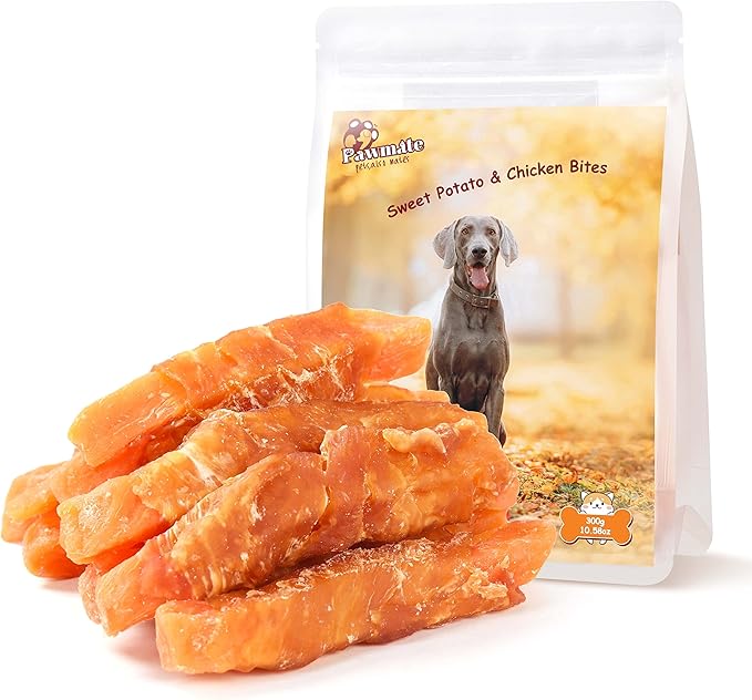 Dog Treats Chicken Wrapped Sweet Potato Fries with Taurine, Gluten Free Grain Free Training Snacks for Small Medium Large Dogs, Skinless Sweet Potato Stripes & Chicken Bites Chewy