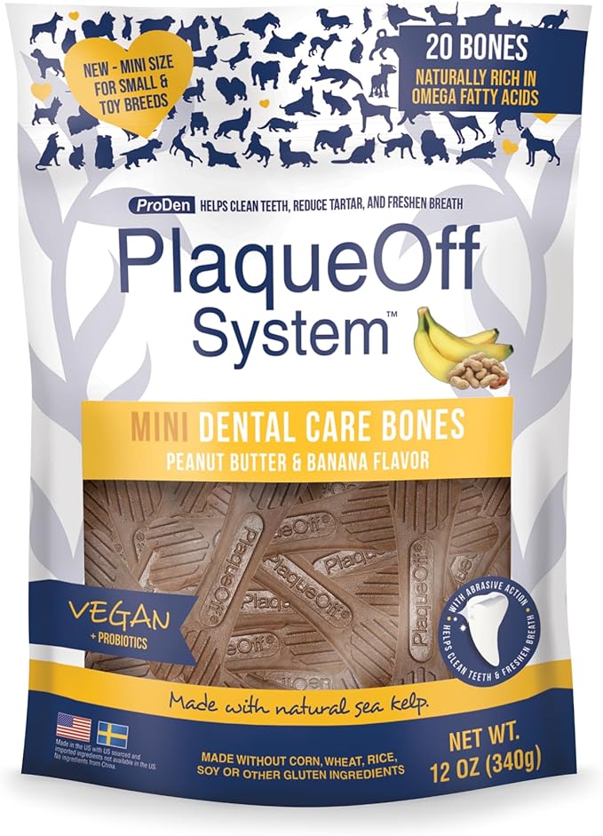 Proden PlaqueOff Sytem Mini Dental Care Bones - Peanut Butter Banana - 12 oz, Brown