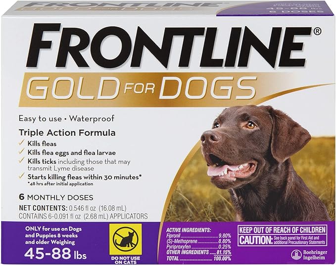Frontline Gold Flea & Tick Treatment for Large Dogs Up to 45 to 88 lbs., Pack of 6