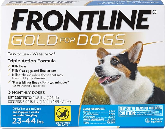 Frontline Gold Flea & Tick Treatment for Medium Dogs Up to 23 to 44 lbs., Pack of 3