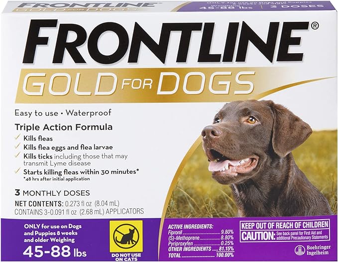 FRONTLINE Gold Flea & Tick Treatment for Large Dogs Up to 45 to 88 lbs., Pack of 3