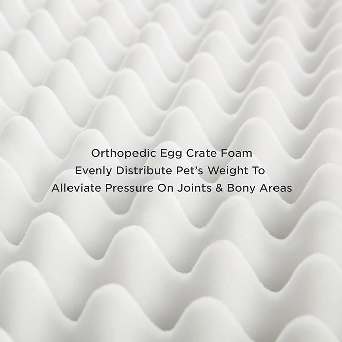 • Orthopedic Support: Designed to give your pet unparalleled support for a deep, dreamy sleep. High-density egg-crate foam distributes weight evenly and provides the perfect amount of pressure relief to reduce joint pain and arthritis discomfort.