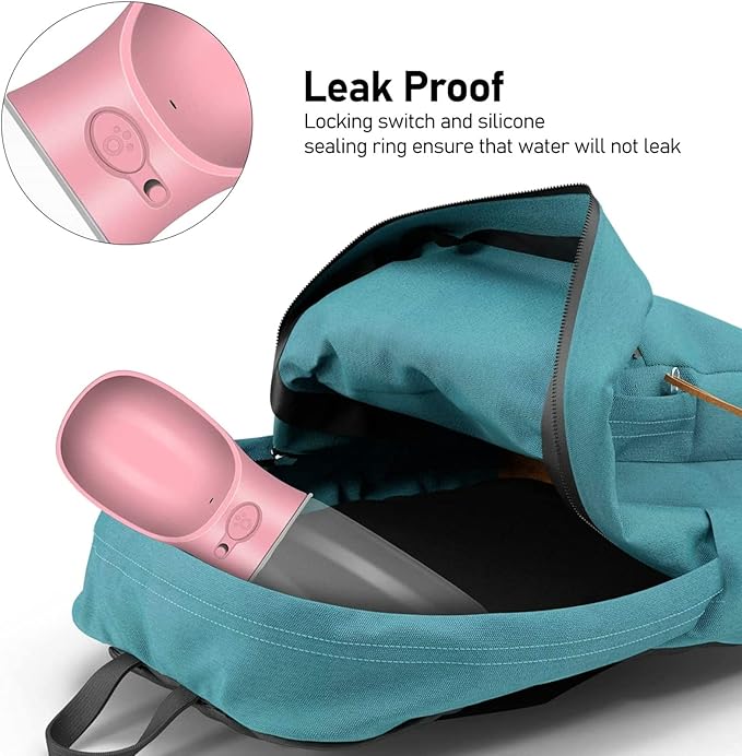 • Our pet water bottle is designed with a silica gel seal ring and lock key, ensuring no leaks. You can carry it in your backpack without worrying about wetting your belongings or wasting water.