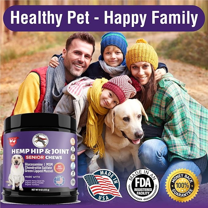 • EXTRA STRONG FORMULA: Senior Mobility Vitamins contain natural ingredients such as Glucosamine HCL, Chondroitin, MSM, Turmeric, Organic Hemp, and Green Lipped Mussels for the everyday active dogs