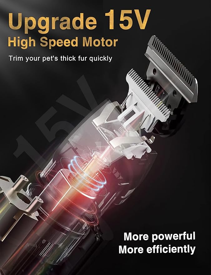 Dog Clippers for Grooming, Professional 15V Heavy Duty Dog Hair Clipper,Pet Hair Trimmers for Thick Coats,Low Noise Cord Dog Grooming Clippers with Guard Combs Brush for Dog Cat
