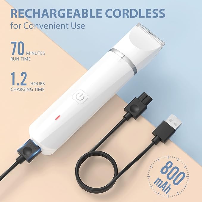 • Rechargeable & Waterproof: The dog hair clippers have a built-in rechargeable USB with an indicator light, make it more convenient to use without changing batteries. Constructed with IP67 waterproof material allows you to wash the dog hair trimmer directly after use.
