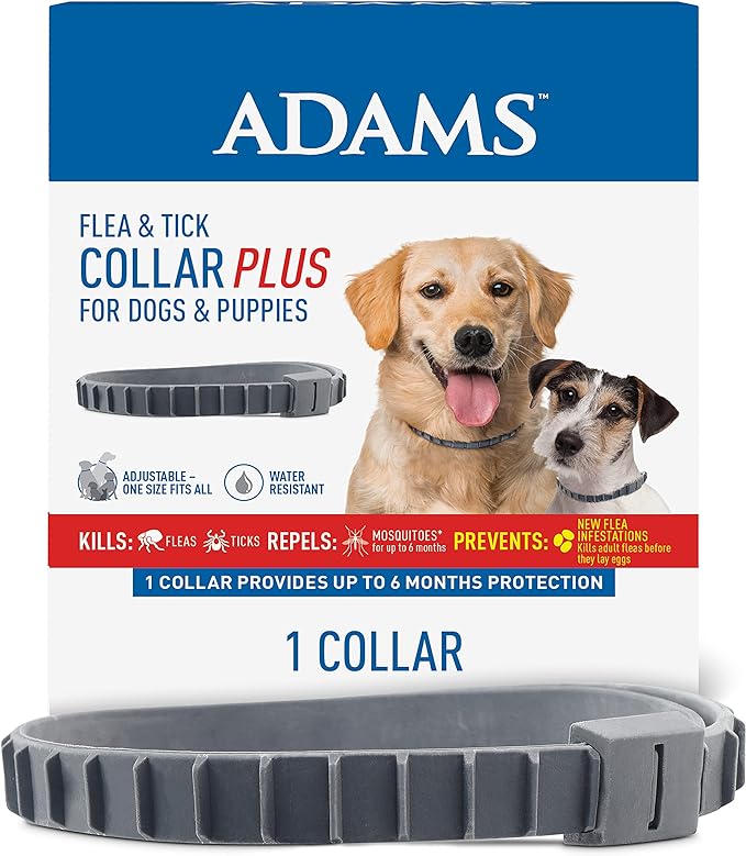 Adams Flea & Tick Collar Plus for Dogs & Puppies, 6-Month Protection, One Size Fits All Dogs & Puppies, Kills Fleas & Ticks, Repels Mosquitoes For Up To 6 Months (excluding California)