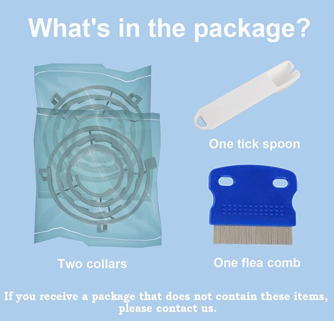 • YOU WILL GET: Two collars, an instruction manual, a comb and tick removal tool. If you receive a package that does not include these, please contact us.