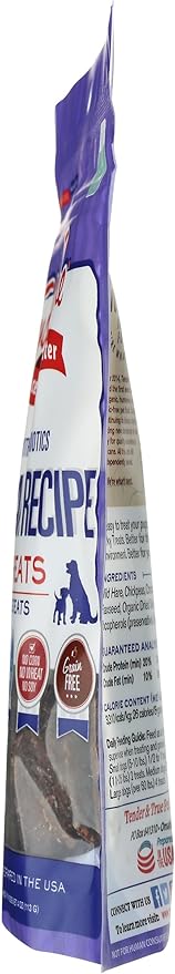 • Grain Free, high protein, soft dog jerky treat that is prepared in the USA