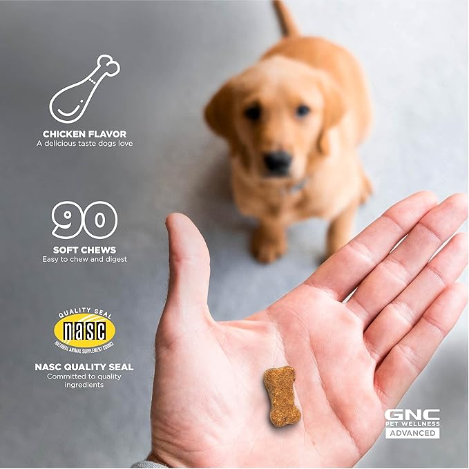 • CHICKEN FLAVORED DOG SUPPLEMENT- Dogs love the delicious chicken flavor of these soft chew dog supplements from GNC
