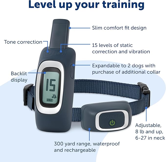 • 3 TYPES OF CORRECTION: Uses 3 types of stimulation: audible tone, vibration and 15 levels of static (includes a safety lock feature for higher levels)