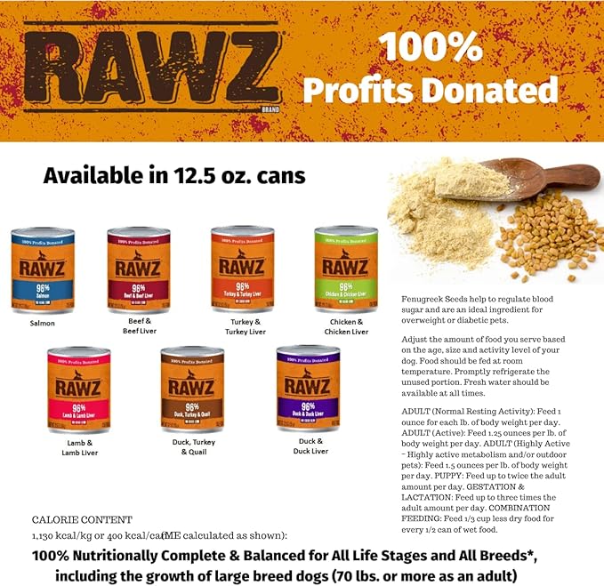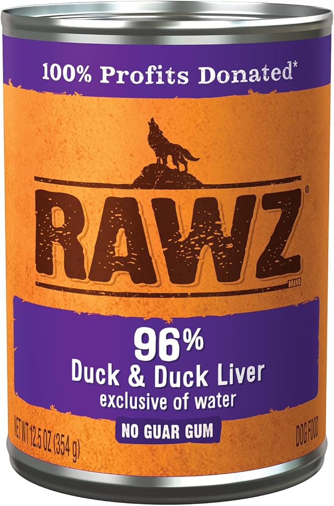 Rawz 96% Meat Canned Wet Food for Dogs 12 Pack/ 12.5 oz. Cans (Duck/Duck Liver)