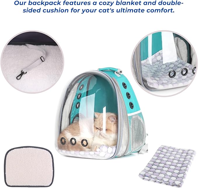 • 🐱【Travel in Style】Let your pet travel in style with our eye-catching clear window design that lets them keep a close eye on their surroundings. The included 2-side mat and flannel blanket make travel even more comfortable for your furry friend.